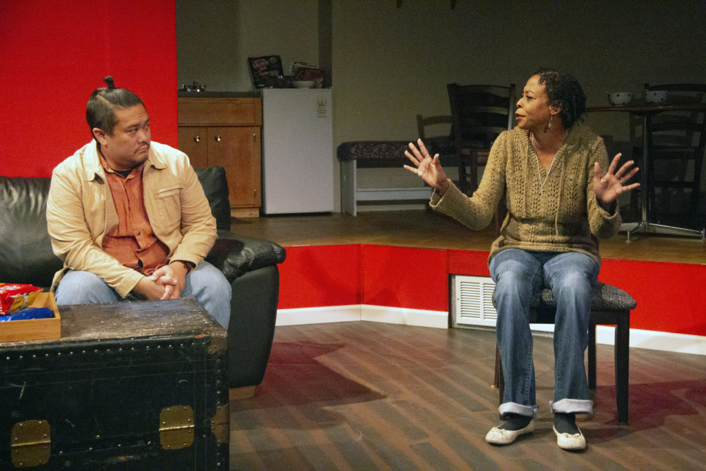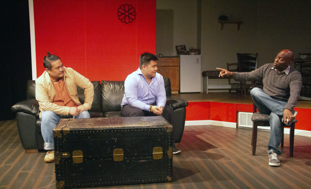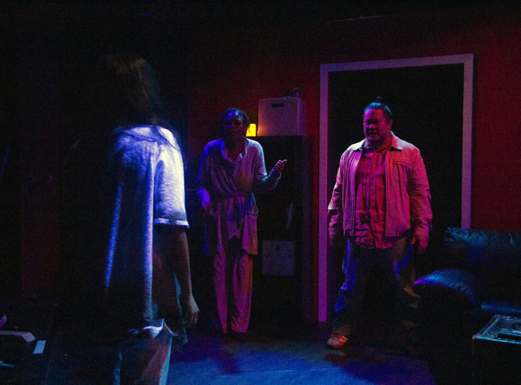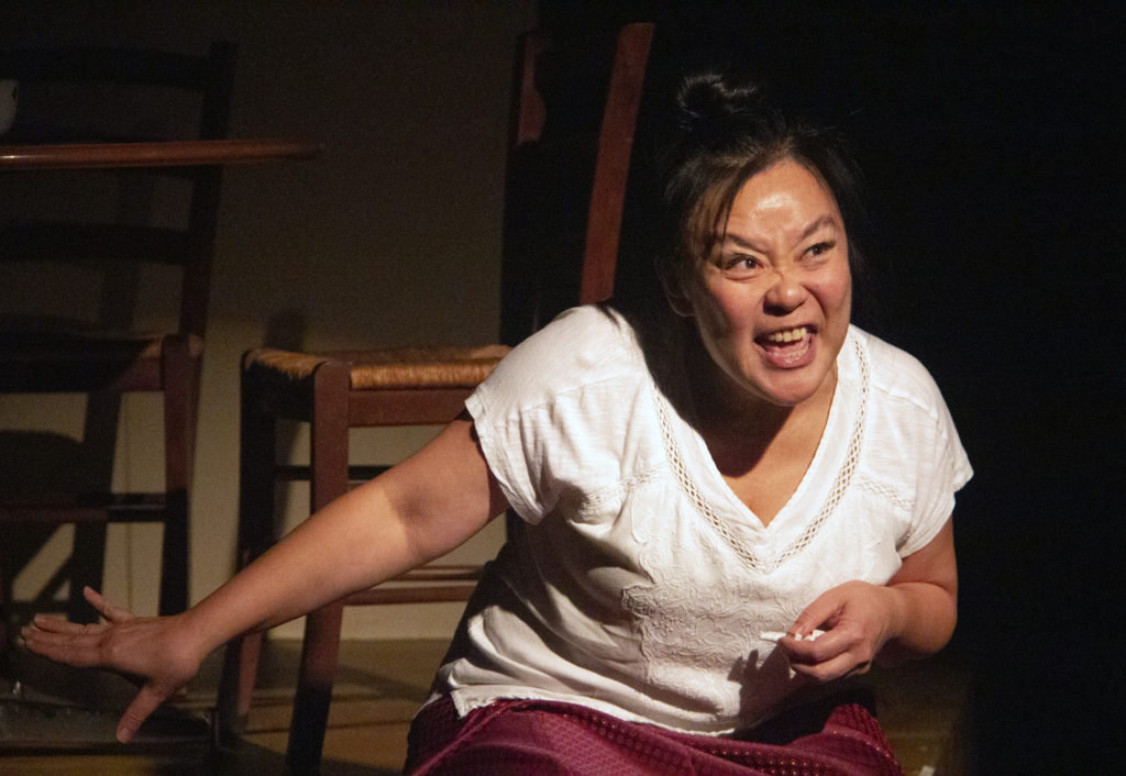 Visarut (Van Lang Pham) and Max (Sean Nguyen) are on the hunt for a ghost. Photo by Alabastro PhotographyDelia (Selena Whitaker-Paquiet) and Felix (Ronnie Hill) may have spotted a ghost. Photo by Alabastro PhotographyDelia (Selena Whitaker-Paquiet) points to where the ghost manifested to Max (Sean Nguyen). Photo by Roger TangJai (Margaret Luxamon Hotchkiss) comes a haunting. Photo by Alabastro PhotographyJai (Margaret Luxamon Hotchkiss). Photo by Alabastro Photography“No ghost stories!” Delia (Selena Whitaker-Paquiet) says to Max (Sean Nguyen). Photo by Roger TangTasanee (Kathy Hsieh) referees a dispute between brothers Visarut (Van Lang Pham) and Max (Sean Nguyen) Photo by Roger TangVisarut (Van Lang Pham) and Max (Sean Nguyen) listen to Felix (Ronnie Hill). Photo by Roger TangDelia (Selena Whitaker Paquiet) talks to Visarut (Van Lang Pham). Photo by Roger TangTasanee (Kathy Hsieh) gives a lecture on gambling and Thai funerals. Photo by Roger Tang.Jai (Margaret Luxamon Hotchkiss) manifests before Delia (Selena Whitaker-Paquiet) and Visarut (Van Lang Pham).Max (Sean Nguyen) ghost hunts while Felix (Ronnie Hill) observes. Photo by Roger Tang.